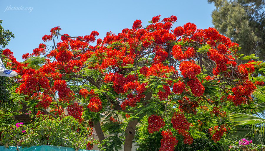 Деревья в Израиле разнообразны и весьма интересны, при этом многие из них ещё и цветут. Поскольку это всё-таки юг, то флора, соответственно, тропическая: пальмы, кипарисы, акации ― всё, что мы обычно привыкли видеть либо в виде комнатных растений (в горшечном варианте, конечно же), либо в оранжереях ботанических садов. Мне не все виды растений удалось идентифицировать (а в пальмы я просто боюсь соваться, учитывая, сколько же там видов). Но могу сказать, что характерными деревьями для Израиля являются не только пальмы, но и такие экзотические для наших широт виды, как оливы, цитрусовые, различные фикусы, кипарисы, жакаранда, акации жёлтая и Леббека, делоникс и брахихитон ― эти древесные растения мне лично встречались чаще других. Впрочем, здесь я не сколько ботанический экскурс собираюсь устраивать. Я просто действительно люблю деревья. Есть в них что-то величественное...