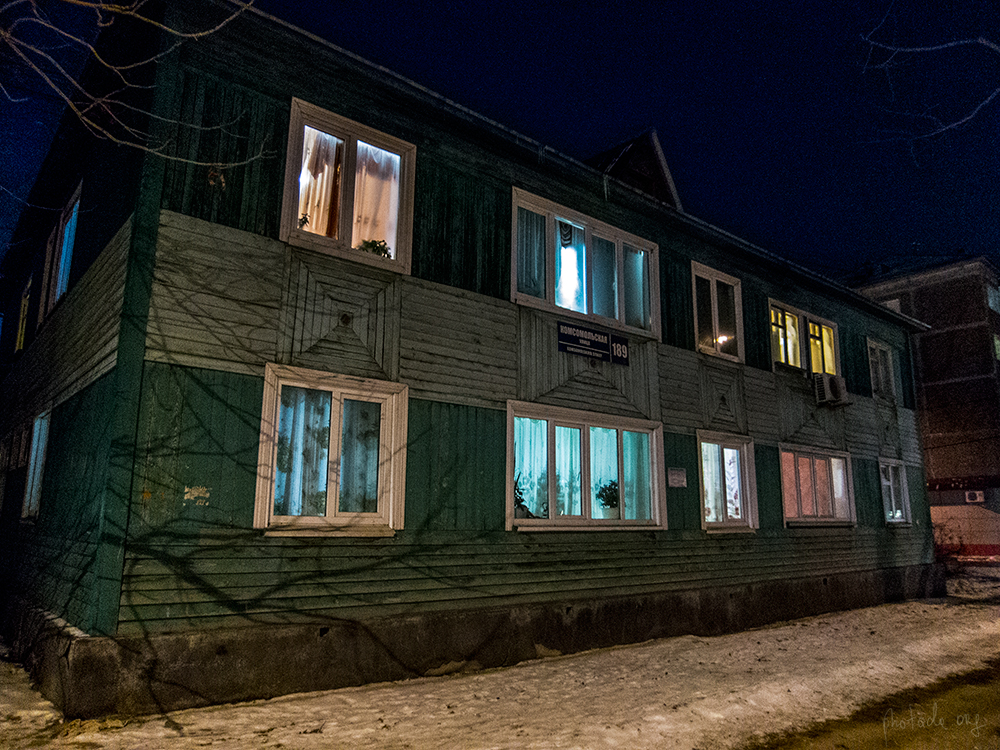 Buildings and houses of night Yuzhno-Sakhalinsk, photographed in January 2017. Here are several examples that are significant for various aspects of urban life.