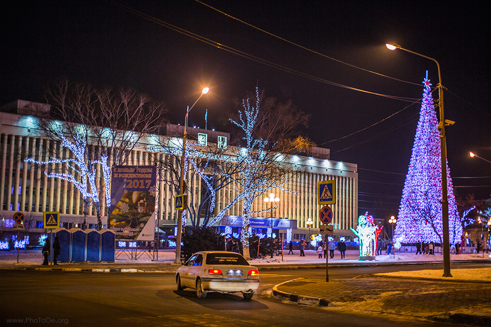 As you can see in the name, this gallery is dedicated to the new year's decoration of Yuzhno-Sakhalinsk. Night transforms cities beyond recognition, hiding the dullness and everyday gloom. But nothing transforms the appearance of any large settlement like the nights on new year's days, when a lot of bright lights are added to the usual street design. And I say not only about numerous Christmas trees decorated with toys and lanterns. Recently, the tradition of decorating trees and lanterns with lights has become quite firmly established. As result, such harsh and difficult time as winter became more beautiful than other seasons, because winter nights are longer, and we can admire many marvelous lights more time. And all these numerous lights reflected from the white snow, turn new year's cities into something amazing and even fabulous. Although I am an adherer of the idea that nature does not have bad weather, and all seasons are good in their own way, winter during the new year holidays looks the most elegant time of the year, thereby compensating for us all the hardships that it tries to heave on us. The authorities of Yuzhno-Sakhalinsk responsibly approached the issue of new year's decoration of the city, it should be noted. There is something to entertain yourself in the winter on Sakhalin, especially for lovers of outdoor activities. But it's nice that you can also just walk around the center in the evening and admire the bright night avenues. I don't know about others, but for me the idea of new year's holidays, when you can take a little break, unload your brain, do something abstract and just enjoy the winter new year's holidays with a great idea. And, apparently, this idea is supported by many people, because in the evenings on the streets of this city we met incomparably more people than during the day ― many came to admire the bright night lights. Especially since there really was something to admire. Let's hope that in the future the city authorities will not change this beautiful tradition, and we will see Yuzhno-Sakhalinsk in all its beauty more than once.