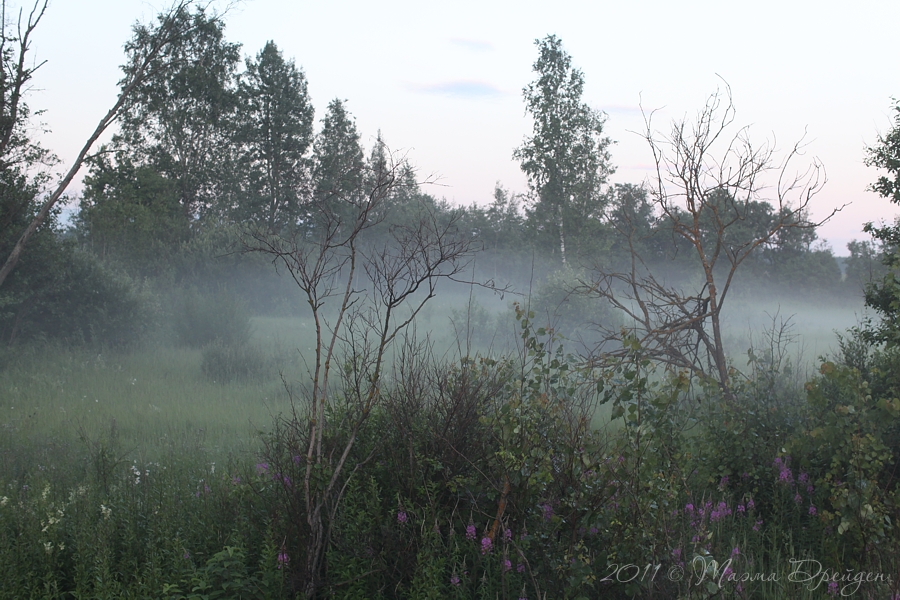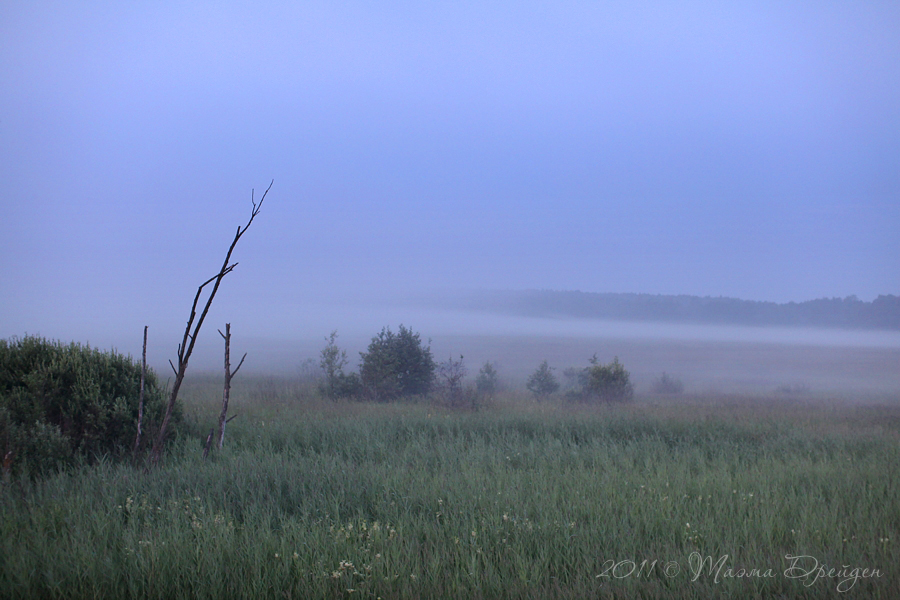 Обычно дорога домой не такая занимательная, как дорога до места назначения. Набравшись впечатлений и порядком подустав, хочется как можно быстрее попасть домой. Однако любая долгая дорога должна быть с остановками для отдыха. Поэтому особенно приятно, когда вынужденная остановка совпадает с интересным наблюдением. Такое случилось с нами в июле 2011: возвращаясь из Вязьмы в Москву, мы увидели туман. Разумеется, мы тут же остановили машину, чтобы запечатлеть эту красоту.